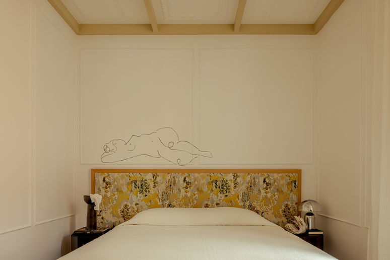 A historic home in Lisbon’s Castelo neighborhood is reimagined as a warm, inspiring retreat that honors its architectural roots. A muted color palette, chevron flooring, and artfully detailed ceilings and trim add depth and character, while curated artwork from travels abroad and custom textiles introduce a layered, bohemian warmth with a global sensibility.